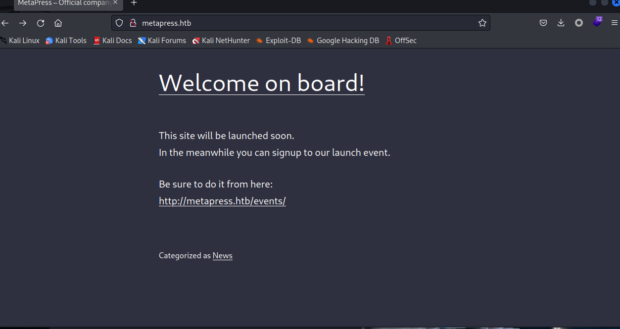 Target: http://metapress.htb/