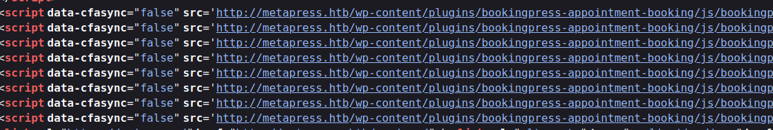 [01:30:00] 302 - 0B - /wp-admin/ -> http://metapress.htb/wp-login.php?redirect_to=http%3A%2F%2Fmetapress.htb%2Fwp-admin%2F&reauth=1