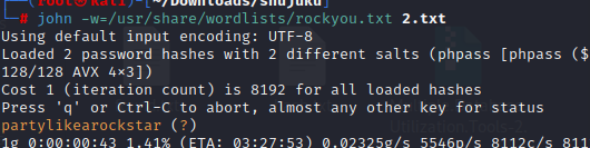 └─# john -w:/usr/share/wordlists/rockyou.txt hash