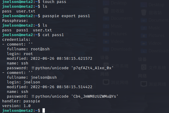 jnelson@meta2:~$ passpie export pass1