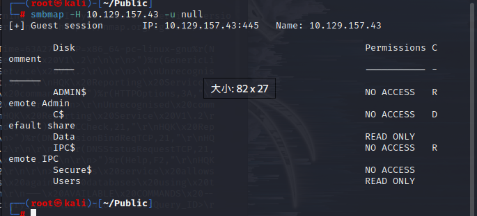 [+] Guest session IP: 10.129.157.43:445 Name: 10.129.157.43