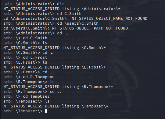 └─# smbclient -N //10.129.157.43/users