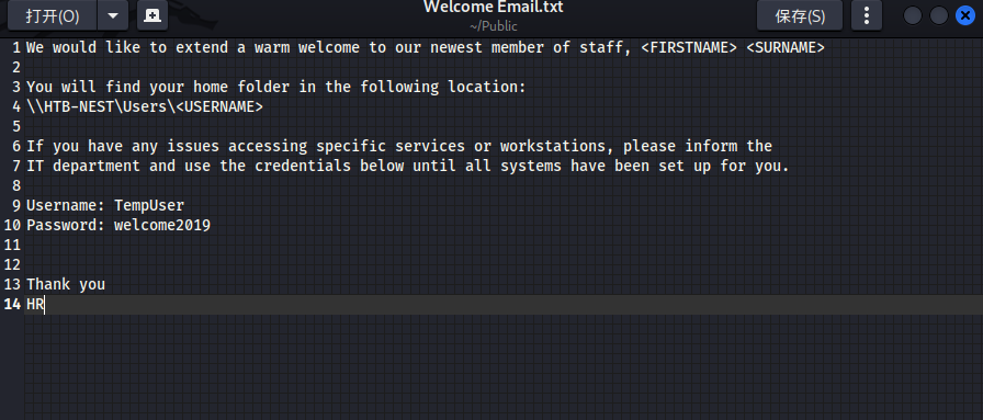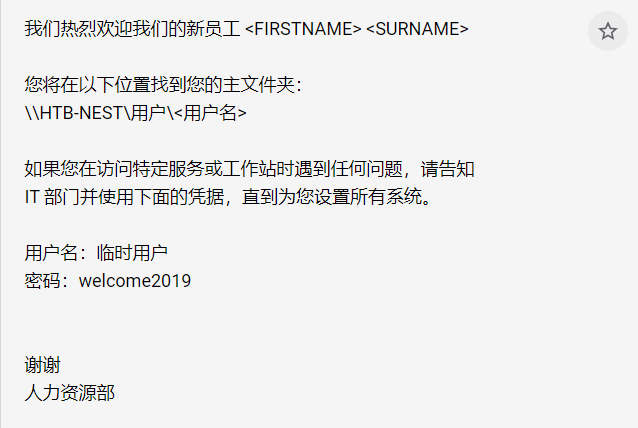 这是一份邮件,意味着此账户和密码可以访问 Tempuser 的共享服务了。