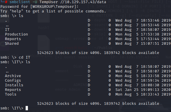 smb: \> cd IT