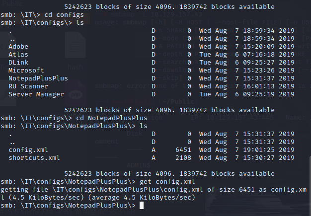 setdir 到上级目录后会发现刚开始在 SMB 里面发现的 config。