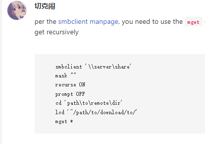 现在需要下载回来他的所有文件,smbclient 的递归下载是这样的: