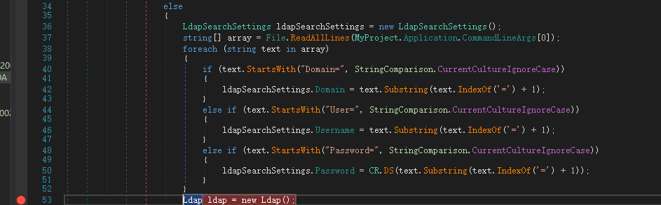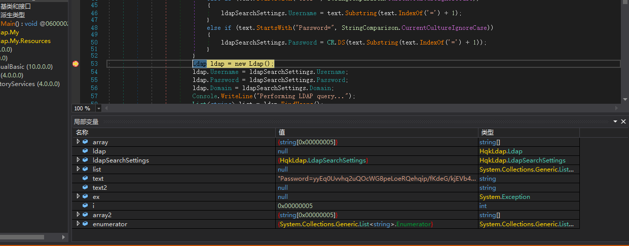那么断点应该打在解密完成后的下一步,即 Ldap ldap = new Ldap();