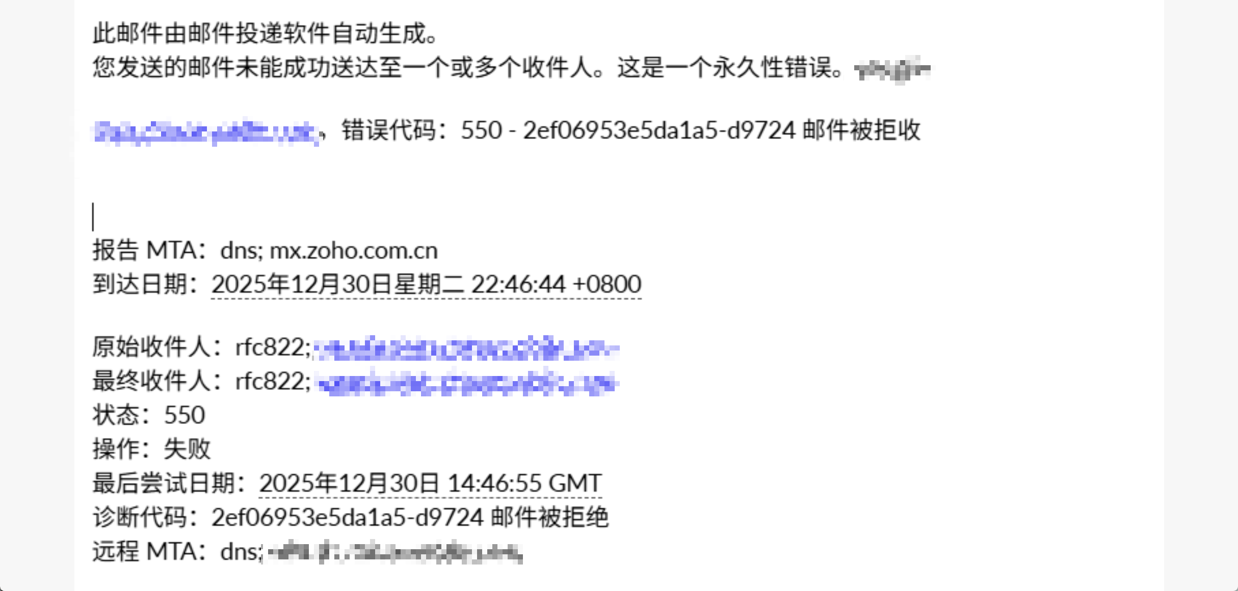 客户给的测试邮箱 失败 550。